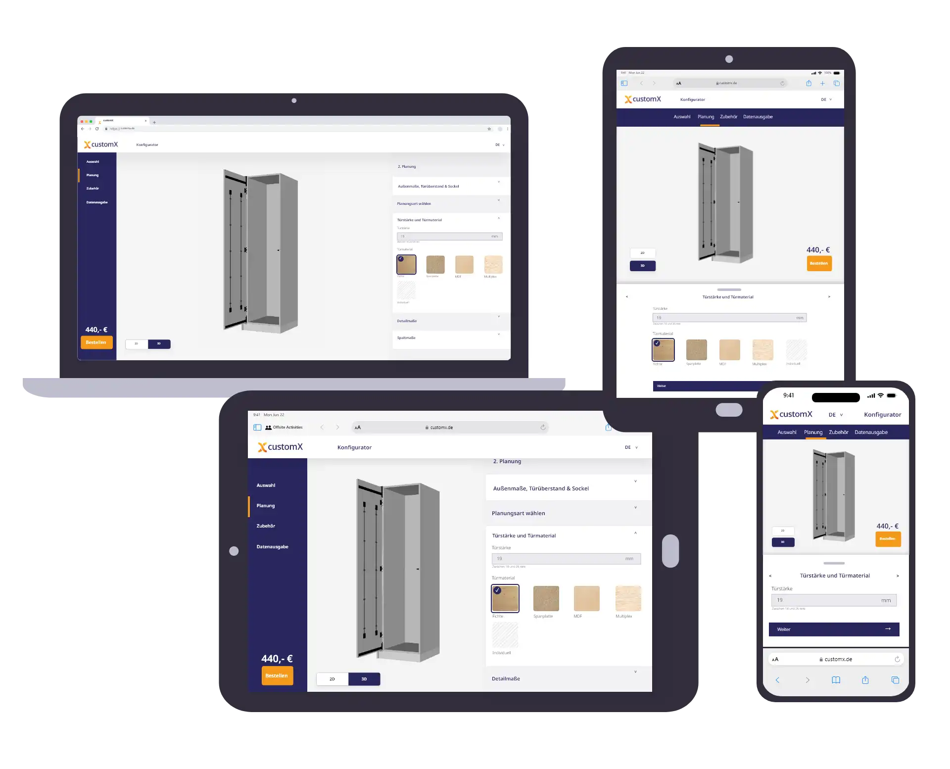 Ein Webkonfigurator macht Ihre Website und damit auch Ihr Unternehmen attraktiver für den User. Das stellen Sie sich schwierig vor? Ist es aber nicht. Unser Konfigurator basiert auf einer Weboberfläche, die eine Einbindung in die Website zum Kinderspiel macht. Dabei spielt es keine Rolle, ob Sie dies als iFrame, eigenständige Anwendung oder als Bestandteil im Webshop bzw. Portal umsetzen.